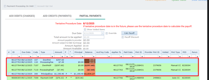 Use color indicators, balances, and ledger markers to quickly track payment activity, identify outstanding amounts, and confirm when transactions have been successfully processed.