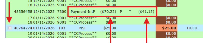 - Payments that are available to be posted will have a checkbox next to them in the ledger.